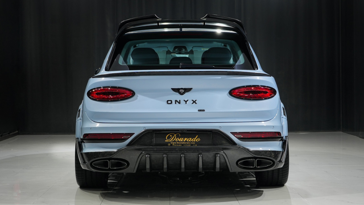 Bentley Bentayga S by Onyx Concept 1 of 5 | 3-Year Warranty and Service New 2024 4.0L / V8 Cylinder 8 Speed Automatic Transmission 542 Horsepower All Wheel Drive European Specs Exterior Colour SPECIAL PAINT: JETSTREAM 2 Interior Colour BABY BLUE --------- Additional Features --------- - Main Hide Baby Blue Onyx Carpets Baby Blue Onyx / Emblem Stitching Baby Blue / LED Welcome Lamps - Touring - Carbon Fiber Interior Pack - External Mirrors with Heating System - Power Folding - Auto Dimming and Memory Function - LED Headlamps with Variable Light Distribution - Vents to Front Wings - Hide Trimmed Steering Wheel Hide Trimmed Gear Lever - Illuminated Onyx Sill and Derivative Treadplate - Adaptive Cruise Control - Connect Package - Driver and Front Passenger Airbag with Front Passenger Airbag Deactivation - Emergency Assistance Call and Roadside Assistance Call - Front Seat Heaters - Separately Controlled - Front Seats - Electrical Adjustment - 2 Memory Positions - Hands Free Boot Opening - Head-Up Display - Mood Lighting - Night Vision - Refrigerant - Seat Belt Warning Light with Acoustic Warning - Top View Camera - Tyre Pressure Monitoring Frequency - Welcome Lighting - Seat Belts in Beluga Black - Start/Stop System - Bentley Dynamic Ride --------- Onyx Parts --------- - Onyx Aero Front Sport Vented Bumper with Forged Carbon Matte Finish - Onyx Matte Forged Carbon Lower Front Splitter - Onyx lower Matte Forged Carbon Side - Matte Forged Carbon Panel Sculpt Package - Onyx Arch Extensions - Onyx Matte Forged Carbon Rear Bumper with Vented Corners - Onyx Matte Forged Carbon Super Sport Rear Diffuser - Onyx Roof Spoiler - Onyx Bespoke Milled Exhaust Tips - Onyx Badge and Logo Program - Onyx 24 Forged Glossy Black Rims - Onyx Coach Line Dourado luxury car dealer is one of the best car dealers. The showroom is located in Dubai (UAE) and offers a wide range of LUXURY and sport cars also limited-edition cars with an inventory combining over 300 cars such as Rolls Royce, Bentley, Lamborghini, Ferrari, Porsche with the best prices in the market. Explore our latest offerings on our company website and stay updated on our inventory, news and promotions by searching for Dourado Luxury Cars on Facebook, Twitter, Instagram and Youtube. For more information contact us on our WhatsApp number +971547065448 or visit our showroom located at Rawabeh Building - Al Quoz - Al Quoz Industrial Area 1 - Dubai.